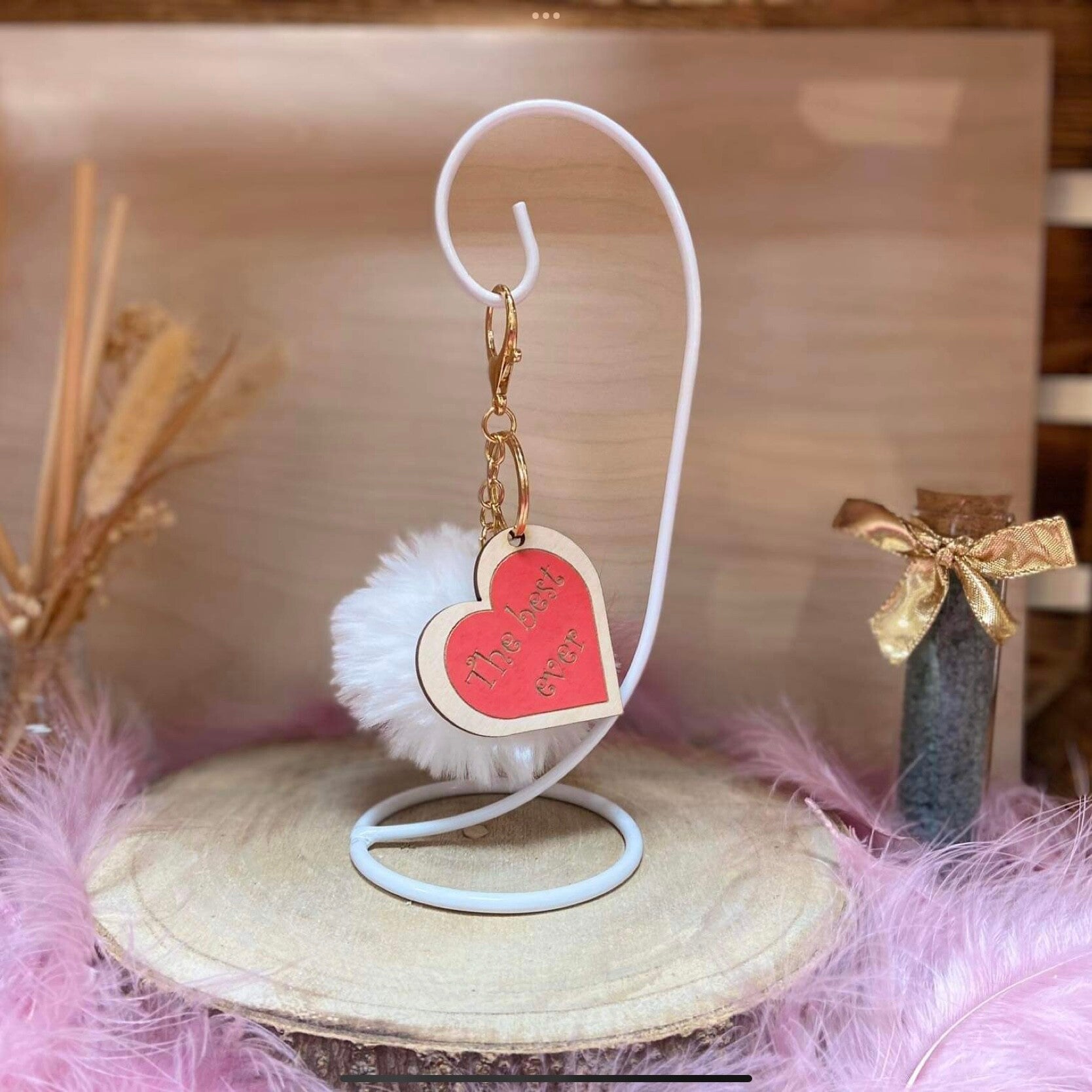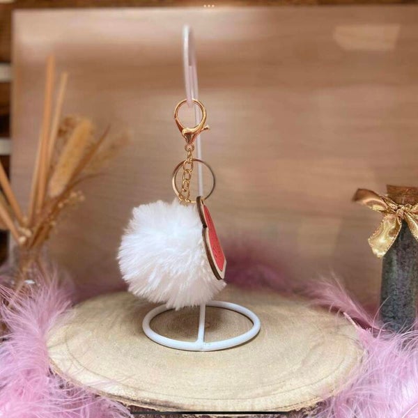 Porte clé bois the best avec pompon